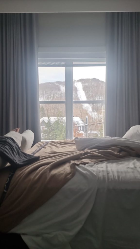 Si je dois faire le bilan de La Première Étape. Ce serait celui-ci : j’ai aimé mon séjour à Orford, pour cette sensation d’être à la fois hors du temps tout en étant bien dans notre temps : voir la montagne dès le lever du jour :